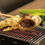 直営店限定 焼いた味噌をおつまみに。高台の穴に割りばしを差し、火にかざして味噌を焙ります。
