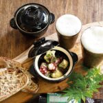 電子レンジ・オーブン・直火調理のほか器としても活躍する手の平サイズの土鍋です。6色展開。