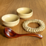 公式通販限定 食卓の雰囲気にあわせて、全5色からお好みの取鉢をお選びいただけます。取鉢4点と使いやすいお玉と鍋敷きをセットにしました。