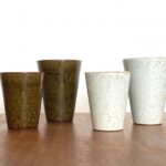内側に釉薬をかけずに焼〆たビアマグは、注いだビールの泡がクリーミーに。渋めのグリーンと梨地のホワイトの2色。大・小の2サイズです。