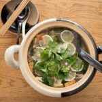 多孔質な伊賀の陶土でできた、蓄熱力の高い伊賀土鍋です。掛け分けの施しが印象深く、食卓を盛り上げます。名前は口福(こうふく)と読みます。