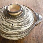 大胆な刷毛目模様が特徴の伊賀土鍋。1点ずつ職人が手描きしております。
