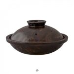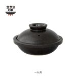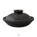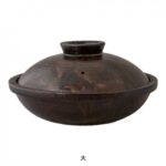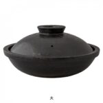 長谷園プレミアムライン。 おもてなしの食卓を引き立てるこだわりの逸品。職人が一つひとつ手作業で”たたき目”の模様を施しています。使いやすい深さの土鍋は、鍋ものはもちろん、空焚きができるのでステーキなどの陶板料理も楽しむことができます。 真っ黒の一歩手前の、美しいマットな墨色です。